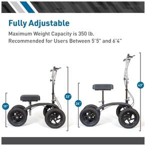 RESISTENTE E DURÁVEL. O BodyMed All Terrain Knee Walker é um auxiliar de mobilidade nas quatro rodas resistente, durável e confortável que oferece uma alternativa de rolamento suave às muletas TODO O TERRENO. Seus quatro pneus todo o terreno deluxe de possibilitam a manobrabilidade em uma variedade de superfícies CARACTERÍSTICAS DO MOTORISTA. Os recursos incluem um design elegante e compacto uma coluna de direção dobrável cesta acoplável volantes dianteiros e freios duplos nas rodas traseiras facilmente controláveis AJUSTÁVEL E CONVENIENTE. Projetado para usuários de várias alturas e tipos de corpo, a altura do guidão se ajusta de a e a altura da joelheira se ajusta de 50 a . A capacidade máxima de peso é de 158 kg MELHOR EM VALOR. A BodyMed fornece produtos de saúde confiáveis e de qualidade profissional ao melhor preço. Nós nos esforçamos para atender às necessidades de profissionais de saúde, empresários e qualquer pessoa no caminho da saúde com opções de alta qualidade e custo benefício Marca: Não Informado