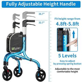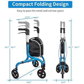Andador Adulto Idoso 3 Rodas PLANET WALK em Alumínio e Ultraleve, Suporta até 117 Quilos, Azul