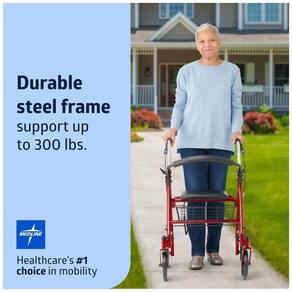 Este andador de rolamento Medline é feito de aço forte e durável e sua estrutura reforçada suporta usuários com peso de até 136 kg. Andador Rollator pesa 9 kg e dobra se para fácil zenamento e transporte. Rodas de rolamento suave de 8 são perfeitas para uso em ambientes internos ou em superfícies lisas Marca: Não Informado