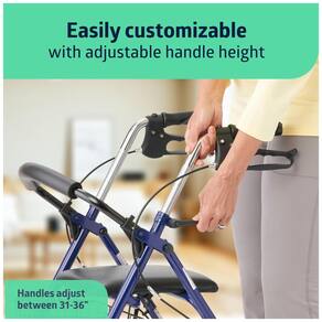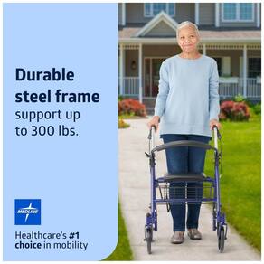 Para caminhar auxiliado quando a mobilidade é desafiada e após a cirurgia, o Medline Steel Rollator fornece equilíbrio e suporte extra e um assento e encosto acolchoados quando você precisa descansar. Forte e durável com montagem simples sem ferramentas, assento acolchoado confortável com suporte para as costas acolchoado removível, cesta conveniente para seus pertences e freios avançados de fácil travamento para segurança. As rodas de 8 que não estragam são ideais para uso interno e externo, mesmo em superfícies ásperas e irregulares. Montagem sem ferramentas e ajuste de altura personalizado da alça, dobras planas para transporte ou zenamento Marca: Não Informado