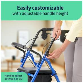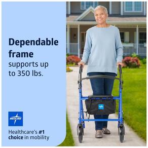O caminhante rolante Medline é construído em aço revestido a pó durável. Braços ajustáveis em altura para garantir um ajuste adequado e capacidades de dobragem para zenamento condensado e fácil transporte. Vem de fábrica com bolsa de zenamento de nylon conveniente sob o assento. Encosto acolchoado e assento acolchoado oferecem capacidade de descanso Marca: Não Informado