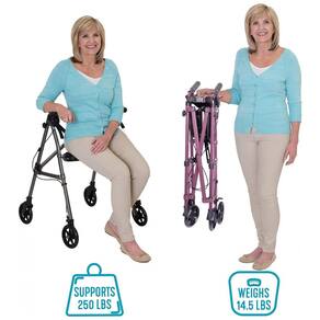 Rolador compacto dobrável O andarilho dobra 3 vezes menor que os andarilhos médios, tornando o portátil e fácil de guardar desmonte o andador de 4 rodas como um carrinho de guarda chuva com o toque de um dedo a fivela incluída mantém o andarilho dobrado. Assento de poleiro conveniente O assento de viagem antiderrapante de 38 por suporta com segurança 113 kg o assento compacto e a alça traseira oferecem um lugar para se sentar para um descanso rápido durante a viagem ou na loja o assento de perfil pequeno maximiza a portabilidade do andarilho Marca: Não Informado