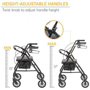 Andarilho rolante com assento O andador rolante de alumínio elegante e moderno apresenta uma estrutura durável, assento e encosto acolchoados e uma bolsa de zenamento espaçosa Rodas de e pneus de aderência suave são perfeitos para uso interno, externo. Ajuste ajustável a alavanca de giro fácil do Rollator permite ajustar rapidamente a altura das alças ergonômicas O andarilho ajustável em altura também inclui um encosto articulado removível que pode ser dobrado para cima ou para baixo para facilitar o zenamento. Dobrável o andador dobrável com design dobrável de um lado para o outro permite dobrar facilmente com uma mão e mantém uma posição em pé, tornando este andador dobrável excepcionalmente fácil de rolar, estacionar e zenar em qualquer lugar Marca: Não Informado