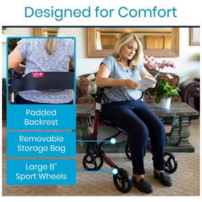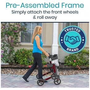 SUPORTE E ESTABILIDADE SUPERIORES Resistente e durável, o andarilho Vive oferece suporte estável, manobrando facilmente sobre qualquer tipo de superfície com grandes rodas esportivas de . A altura da alça é ajustável para um ajuste personalizado para cada indivíduo. Suportando até136 kg, a estrutura de alumínio é resistente à corrosão e dobra para fácil zenamento e transporte. Inclui um assento e encosto largos para descansar confortavelmente em movimento. DESIGN DOBRÁVEL COMPACTO O andarilho dobrável é compacto quando dobrado, cabendo facilmente no porta malas de um carro ou até mesmo no banco traseiro. Dobragem sem complicações em uma etapa fácil. Basta puxar a alça central sob o assento. Para zenamento mais compacto, as rodas dianteiras são removíveis com um simples botão de liberação e as rodas traseiras são articuladas para dobrar contra o quadro. Ele pesa apenas 20 quilos. SISTEMA DE FREIO DUPLO Cada uma das alças ergonômicas é angulada para posicionar as mãos em uma posição neutra, reduzindo a fadiga e permitindo fácil acesso aos freios de mão estilo bicicleta. Os freios de travamento das rodas garantem que o andarilho não se mova quando ativado Marca: Não Informado