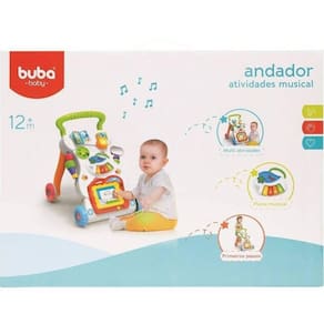 O Andador Atividades Musical da Buba é ideal para ajudar os bebês nos primeiros passinhos de maneira divertida. A linha Buba Baby tr itens pensados com muito carinho para o seu bebê. Através de cores, formas e texturas, estimula todos os sentidos, contribuindo para o crescimento saudável da criança. Contribui de diversas formas para o desenvolvimento do bebê: - Primeiros passos: O andador estimula o bebê a dar os primeiros passos com segurança. - Estímulos sensoriais: As cores vibrantes, diferentes formas e brinquedos de atividades com sons ajudam no desenvolvimento dos sentidos do bebê. - Diferentes formas de brincar: Além de apoiar os primeiros passos, o Andador Atividades Musical da Buba vem com vários brinquedos de atividades que vão entreter e estimular a criatividade dos pequenos: - Minilivro com ilustrações - Minicelular - Espelho - Disco giratório com números - Piano musical - Formas texturizadas - Lousa mágica. A diversão e aprendizado do seu bebê será garantida Contém: Minilivro com ilustrações, Minicelular, Espelho, Disco giratório com números, Piano musical, Formas texturizadas, Lousa mágica. Informações básicas: Marca: Buba Utiliza 2 pilhas AA não inclusas . Contém: 1 andador com 1 mini livro, 1 mini celular, 1 disco giratório, 1 piano musical, 1 espelho e 1 lousa mágica Idade: Acima de 12 meses. Inmetro Ce-bri/innac - 00110-13A NM 300/2002 Ean: 7899525668498