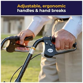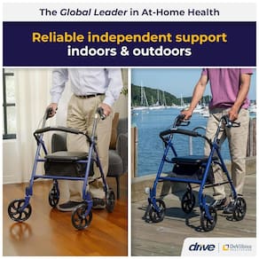 O Andador Rollator Walker com Assento da Drive Medical continua sendo líder em design, qualidade e valor. Com uma estrutura resistente em aço, este andador de 4 rodas oferece força, suporte, durabilidade e conforto. Possui encosto acolchoado dobrável, assento quadrado confortável , bolsa conveniente para itens pessoais e rodas. As alças ajustáveis em altura são ergonômicas, reduzindo o desconforto nas mãos e articulações. Além de ser um companheiro de viagem, este rollator funciona como uma cadeira confortável, permitindo descanso a qualquer momento. Estável, forte e elegante, este rollator de aço é ideal para idosos e adultos em busca de estabilidade. As quatro rodas proporcionam estabilidade tanto em ambientes internos quanto externos. O freio de mão pode ser acionado para travar o rollator no lugar. A alavanca de ajuste de altura permite ajustar as alças de 79 a 89 centímetros. O design dobrável permite fácil transporte e armazenamento. Adquira um rollator Drive com confiança.