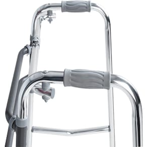 O Andador D10 Dellamed de alumínio é 3 em 1 (Fixo, articulado e móvel) e possui 3 barras.