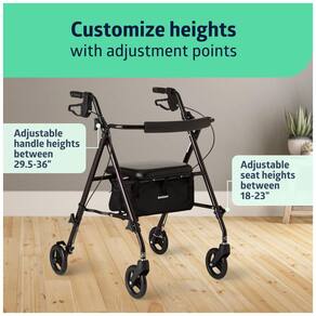 Experimente a combinação perfeita de conforto, conveniência e mobilidade com o Andador de Alumínio Superleve Medline em elegante preto. Com menos de 5,71 kg, este auxílio de mobilidade possui uma estrutura de alumínio leve e resistente que suporta até 113 kg, sendo uma escolha ideal para quem busca apoio confiável sem o peso de equipamentos pesados. O design do andador é meticulosamente elaborado para acomodar usuários de alturas variadas, de 104 cm a 162 cm, com braços e assento ajustáveis em altura. O assento acolchoado confortável e encosto oferecem um local de descanso durante seus passeios ou tarefas, garantindo que você possa fazer uma pausa sempre que necessário. O andador também possui uma bolsa de armazenamento conveniente localizada sob o assento, proporcionando um local seguro para seus pertences pessoais. A segurança é uma característica fundamental deste andador, com freios de fácil aderência projetados para maior segurança durante o movimento. O design compacto e dobrável do Andador de Alumínio Superleve Medline garante armazenamento e transporte sem complicações, tornando-o uma escolha prática para quem tem um estilo de vida ativo. A montagem sem necessidade de ferramentas e as rodas de 6 polegadas ainda aprimoram o design fácil de usar do andador. A distância entre os braços é de 43 cm, e a altura do assento pode ser ajustada de 46 cm a 58 cm. A altura total do andador pode ser ajustada de 74 cm a 91 cm, garantindo um ajuste confortável e personalizado para cada usuário. Com o Andador de Alumínio Superleve Medline, a mobilidade é fácil, confortável e conveniente.