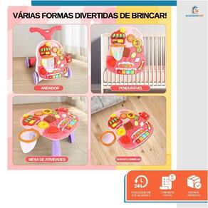 Andador de bebê 2 em 1: O andador de aprendizado de sentar a ficar em pé incentiva os primeiros passos do bebê, desenvolvendo coordenação e força ao empurrar o andador para frente, aprendendo a ficar em pé e caminhar inicialmente.Centro de Atividades Musical: Este andador de bebê oferece um centro de atividades para os bebês, incluindo blocos em formato de animais, engrenagens giratórias, um piano musical e muito mais, proporcionando várias formas divertidas de brincar.Projetado para Bebês: A alça do andador pode ser ajustada de acordo com a altura do bebê. Além disso, ele pode ganhar peso através da injeção de areia ou outros objetos pesados, garantindo que o bebê ande com mais estabilidade.Alta Qualidade e Segurança - Ambos os pneus são revestidos com anéis de borracha antiderrapante, a estrutura triangular suporta o chassi, evitando que o andador vire facilmente. A velocidade das rodas traseiras é ajustável, atendendo às necessidades dos bebês em diferentes estágios de caminhada.Características:Feito de materiais de alta qualidade e não tóxicosEstrutura triangular estável torna o item mais seguroDuas opções de ajuste de velocidade, adaptáveis à velocidade de caminhada do bebêA alça pode ser ajustada de acordo com a altura do bebêDesign de injeção de água, caminhada mais estávelEspecificações técnicas:Material: PlásticoDimensões: 41cm altura x 35cm largura x 40cm comprimento Necessita de 3 pilhas AA não incluídas Idade recomendável: 6+ mesesMarca: Baby StyleHomologação Inmetro: 3952/2018-BRI-23