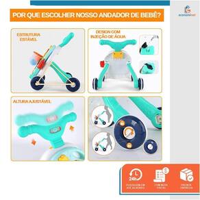 Projetado para Bebês: A alça do andador pode ser ajustada de acordo com a altura do bebê. Além disso, ele pode ganhar peso através da injeção de areia ou outros objetos pesados, garantindo que o bebê ande com mais estabilidade.
