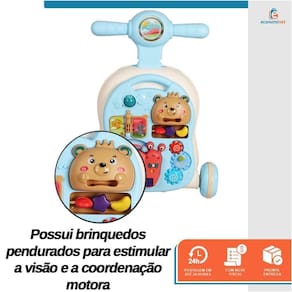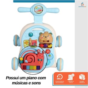 Andador Musical Infantil 3 em 1 Este andador musical infantil 3 em 1 é o brinquedo perfeito para ajudar seu bebê a aprender a andar e se divertir ao mesmo tempo Com seu design colorido e alegre, este andador é repleto de recursos que vão estimular os sentidos do seu bebê e ajudá-lo a desenvolver suas habilidades motoras. Características: 3 em 1: Este andador pode ser como andador, carrinho de passeio e centro de atividades. Musical: Possui um piano com músicas e sons para estimular a audição do seu bebê. Luzes: Possui luzes que piscam para atrair a atenção do seu bebê. Brinquedos: Possui brinquedos pendurados para estimular a visão e a coordenação motora do seu bebê. Ajustável: A altura do assento pode ser ajustada para se adequar ao tamanho do seu bebê. Segurança: Possui freios nas rodas para garantir a segurança do seu bebê. Benefícios: Ajuda o bebê a aprender a andar: O andador fornece suporte para o bebê enquanto ele aprende a dar seus primeiros passos. Estimula os sentidos: Os recursos musicais, luzes e brinquedos do andador estimulam os sentidos do bebê e o ajudam a desenvolver suas habilidades motoras. Divertido: O andador é um brinquedo divertido que vai manter o seu bebê entretido por horas. Especificações: Idade recomendada: 6 a 36 meses Material: Plástico ABS Dimensões do produto: 54cm comprimento x 47cm altura x 40cm largura Pilhas necessárias: 2 unidades, tipo AA/1,5V não incluídas Inclui: Andador Piano Brinquedos pendurados Homologação Inmetro: 00671/2020-BRINQ-4 Marca: Não Informado