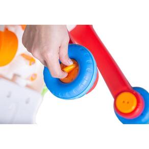 O andador possui regulagem da velocidade das rodas para criar mais atrito no começo quando o bebê ainda precisa de mais apoio, e mais tarde podem ser soltas.