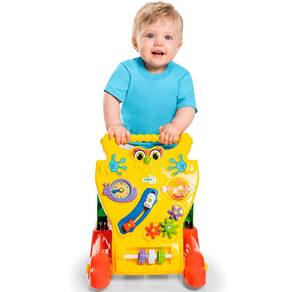 O design robusto e as cores vibrantes do andador capturam a atenção e estimulam os sentidos do bebê. As rodas são projetadas para oferecer estabilidade, garantindo que a criança se mova com segurança, enquanto a alça ergonômica é perfeita para as pequenas mãos se agarrarem.