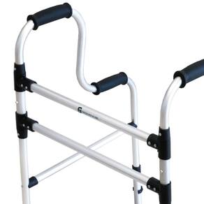 Andador Fixo 2 Barras Duplo Punho Até 130kg Natural Sequencin Andadores Sequencial Milimétrica tem a fabricação em 100% em alumínio estrutural o que torna o andador mais leve do mercado e facilitando a locomoção, causando menos fadiga muscular. Acabamento 100% anodizado cor natural fosco, sem pinturas, evitando que descasque. Além de trazer conforto ao usuário, pode ser utilizado em lugares úmidos e próximo a maresia. Com apoio de mão e conexões em polímeros; ponteira 1" curta. Tem capacidade para usuários ate 130kg. Descrição técnica: - Capacidade130 kg - Fabricação 100% em alumínio estrutural; - Anodização fosca; apoio e mão e conexões em polímeros; ponteira 1" curta. Medida: - Cinco níveis e altura. - Altura máxima 91cm. - Altura mínima 81cm. - Abertura 46cm. - Largura total 54cm. Cor: - Alumínio Natural. - ANVISA: 81028800001 - Peso: 2,300 kg - Dimensões: 81cm x 9cm x 54cm. Indicações: - Auxiliar as pessoas com dificuldade de locomoção e equilíbrio. : - Prazo de de seis meses contra defeitos de fabricação, a contar da data da compra, acompanhado de documento fiscal. A não atende problemas de má utilização do produto.