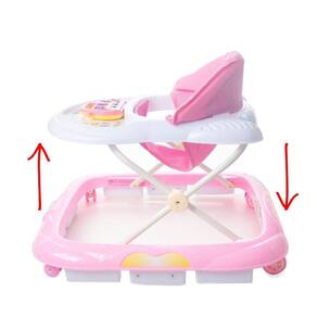 Possui 4 rodinhas que proporcionam uma maior estabilidade, assento e encosto com espuma para maior conforto, regulagem de altura para acompanhar o crescimento da criança, freios para evitar possíveis quedas tudo com certificação do INMETRO.