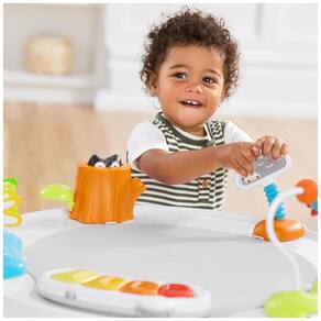 Projetado em colaboração com um pediatra, nosso centro de atividades para bebês oferece uma abordagem de corpo inteiro para brincar e aprender. Nossa janela de descoberta exclusiva permite que o bebê veja seus pés enquanto brinca para aprender causa e efeito Fácil de montar, com brinquedos que podem ser posicionados em qualquer lugar para o bebê, possui um assento giratório de 360 graus que gira e estica para pular À medida que o bebê cresce, nosso centro de atividades se converte para facilitar o cruzeiro tornando se uma mesa limpa e resistente para colorir, brincar e muito mais Três estágios de uso sentar, girar, pular e brincar Navegue e interaja Mesa de jogo 25 atividades de desenvolvimento Brinquedos de encaixe podem ser posicionados com base nas habilidades do bebê Marca: Não Informado