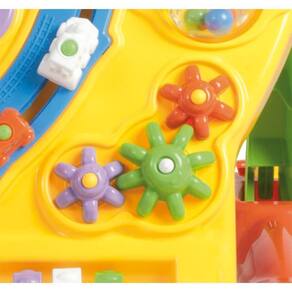 Com relevos e diversas interações, como pecinha para girar com barulhinho de ?creck-creck?, trenzinho deslizante e chocalho.