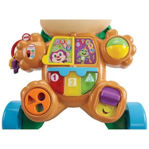 O andador de bebê Fisher-Price Cachorrinho ajuda a criança a dar seus primeiros passos, desenvolvendo equilíbrio e coordenação. Ele tem 2 formas de brincar conforme o bebê cresce: sentado ou andando. O nariz e as teclas do piano acendem, e há peças que giram, rolam e dá até para virar as páginas! São mais de 75 músicas, sons e frases, que ensinam conceitos introdutórios sobre o alfabeto, formas, cores, números e muito mais. O conteúdo educativo muda conforme a idade e a fase do bebê, através da tecnologia Smart Stages. A alça dá firmeza aos primeiros passos do bebê.