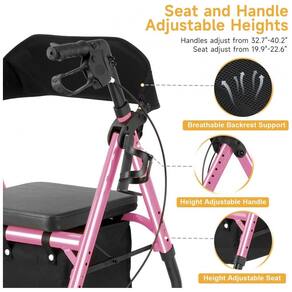ANDADOR DE ROLADOR LEVE: O andador dobrável possui uma estrutura de alumínio e a capacidade máxima de peso é de 300 libras aproximadamente 136 kg. Você pode virar o encosto para sentar e descansar, é durável e confortável. É amigável para sua cintura e quadris. Trave os freios quando estiver sentado.