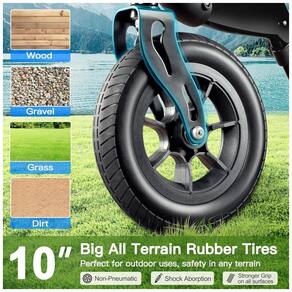 Andador Rollator Perfeito para Exteriores: Equipado com pneus grandes de 10 polegadas de PU sólido à prova de explosão, este andador rollator todo-terreno oferece excelente tração antiderrapante, resistência ao desgaste e absorção de choque. Seja em terrenos como grama, cascalho, terra ou rachaduras na calçada, ele oferece uma experiência de uso suave e segura, garantindo estabilidade a cada passo.