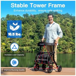 Estrutura de Alumínio Leve e Durável: O andador rollator Farani apresenta uma estrutura de alumínio premium, que combina leveza, durabilidade e facilidade de manuseio. Com seis configurações de altura ajustáveis (de 84 cm a 97 cm), ele é ideal para usuários com altura entre 1,52 m e 1,85 m. Sua capacidade de peso de até 136 kg oferece suporte confiável e seguro, proporcionando confiança e tranquilidade para o uso de idosos.