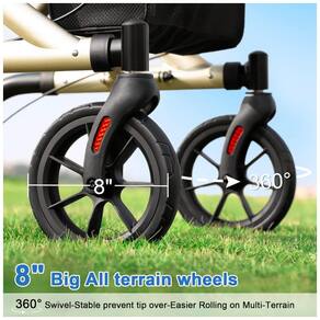 Sistema de Segurança Duplo - Com sistema de freios duplos, você pode controlar facilmente a velocidade do andador e bloquear os freios ao sentar, garantindo estabilidade e segurança. O padrão antiderrapante nas rodas aumenta a resistência, prevenindo escorregamentos entre as rodas e o solo.