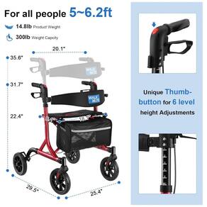 Leve e Resistente - Fabricado em alumínio, o andador pesa apenas 6,7 kg e suporta até 136 kg. O assento espesso e respirável, combinado com o encosto acolchoado, oferece conforto e segurança enquanto o usuário descansa após caminhar por longos períodos.