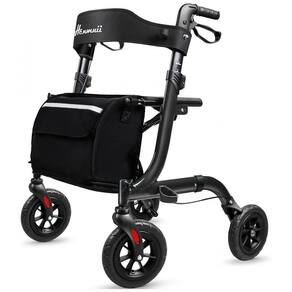 Rodas Anti-deslizantes de 360 Graus e Multi-terreno: Equipado com pneus de 20 cm, este andador tem função de absorção de choque e rodas dianteiras com rotação de 360 graus, proporcionando excelente mobilidade e facilidade de movimento. Ele supera terrenos irregulares e reduz os impactos causados por superfícies irregulares, tornando-o perfeito para calçadas de grama, terra, cascalho e caminhos irregulares.