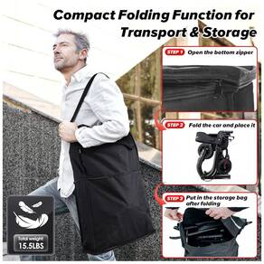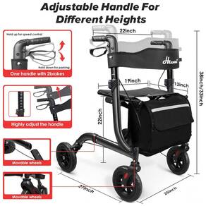 Função Compacta de Dobragem para Transporte e Armazenamento: Para facilitar o transporte, basta puxar a alça do assento e o andador se dobra rapidamente. A estrutura dobrável e as rodas removíveis com liberação rápida permitem minimizar o peso e as dimensões, tornando-o fácil de transportar e armazenar. A bolsa multifuncional incluída também serve como estojo de viagem.