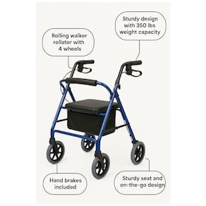O Andador Rollator de 4 Rodas da DR. DUNLEY possui estrutura robusta de aço que suporta até 159kg, garantindo desempenho duradouro e segurança. Seu design com 4 rodas permite deslizar suavemente tanto em ambientes internos quanto externos, oferecendo estabilidade. Os freios manuais ergonômicos garantem melhor controle e segurança ao caminhar ou sentar. Possui assento acolchoado integrado para descanso e uma bolsa espaçosa para manter os itens essenciais por perto. Leve e dobrável, foi projetado para uso diário e viagens, dobrando facilmente para transporte ou armazenamento compacto.