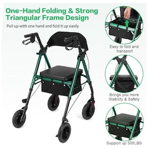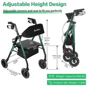 O andador rollator Ambliss para idosos é fabricado com estrutura reforçada em alumínio líquido e barras duplas de suporte, com tubos espessos e parede robusta, suportando até 136 kg, garantindo durabilidade e estabilidade a cada passo.