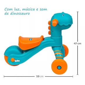 Triciclo andador Dino Premium Buba Com luz, música e som de dinossauro