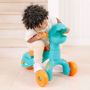 A criança aprende desde cedo a se equilibrar e adquirir autoconfiança, facilitando a transição para a bicicleta com pedais. É estável, pois possui rodas duplas na frente e atrás, com design diferenciado.