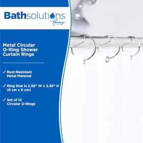 Anéis básicos de cortina de chuveiro Kenney KN96004 de metal resistente à ferrugem em forma de O para cortina de chuveiro e haste de cortina de chuveiro padrão, uso no banheiro, fáceis de instalar, conjunto de 12, cromados - O