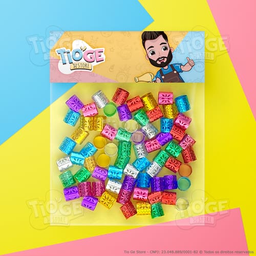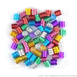 Os Anéis para Enfeitar Penteado são perfeitas para dar um charme especial nos cabelos das meninas. Eles são lindos e prendem super fácil em todos os tipos de cabelos, podendo ser utilizadas em penteados, tranças, box braids, dreads ou ou apenas distribuídas nos cabelos soltos. Feitos de alumínio durável, esses anéis são leves e seguros para os cabelos dos pequenos. Projetados especialmente para penteados infantis, esses anéis de trança são a maneira perfeita de adicionar um toque de diversão aos cabelos das crianças. O pacote é composto por 70 peças sendo 10 unidades de cada cor: Dourado, Prateado, Vermelho, Azul, Verde, Rosa e Roxo.