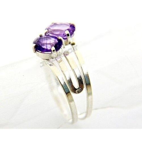 Anel 2 Gemas Prata Pedra Ametista Extra Qualidade Gema Oval Facetado Pedras Naturais, com lapidação manual aro ajustavel ao dedo serve do 10 ao 30 Prata de lei