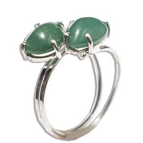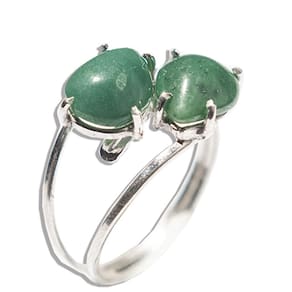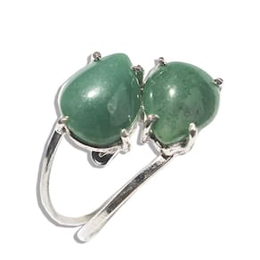 Anel 2 Pedras Quartzo Verde Natural Gota Lisa Prata 950 Aro Ajustavel, Pedra Quartzo Verde Gema Gota Lisa Natural de garimpo, com lapidação manual aro ajustavel ao dedo serve do 10 ao 30 Prata de lei.