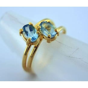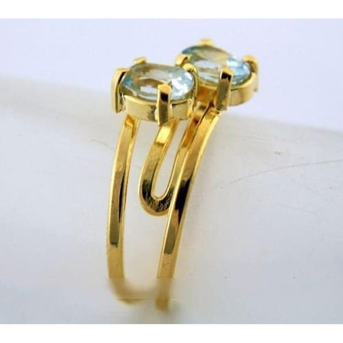 Anel 2 Pedras Topazio Azul Gemas Facetado Pedras Naturais, com lapidação manual aro ajustavel ao dedo serve do 12 ao 30 banho flash dourado