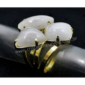 Realce sua elegância com o Anel Quartzo Leitoso. 3 pedras deslumbrantes. Aro ajustável para o ajuste perfeito. Não Perca a oportunidade!