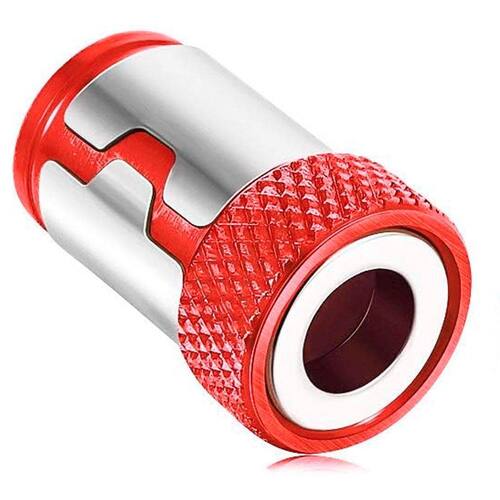 Anel Adaptador Magnético de Pontas Bits para Parafusadeiras Vermelho Dremax - Marca: Dremax - Referência: MD050 - Cor: Vermelho - Encaixe: 1/4 Pol. 6,35mm - Diâmetro externo: 15mm - Comprimento: 21mm - O anel magnético com ímã lhe ajudará a segurar os parafusos na posição de fixação reduzindo a abrasão e à cabeça de chave de fenda, estendendo a vida útil deles. - Pode-se utilizar em chaves de fendas, Philips e parafusadeira. - Material: Aço e Ímã - Garantia: 90 dias Obs: não acompanha o bits. Marca: Dremax