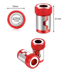 Anel Adaptador Magnético de Pontas Bits para Parafusadeiras Vermelho Dremax - Marca: Dremax - Referência: MD050 - Cor: Vermelho - Encaixe: 1/4 Pol. 6,35mm - Diâmetro externo: 15mm - Comprimento: 21mm - O anel magnético com ímã lhe ajudará a segurar os parafusos na posição de fixação reduzindo a abrasão e à cabeça de chave de fenda, estendendo a vida útil deles. - Pode-se utilizar em chaves de fendas, Philips e parafusadeira. - Material: Aço e Ímã - Garantia: 90 dias Obs: não acompanha o bits. Marca: Dremax