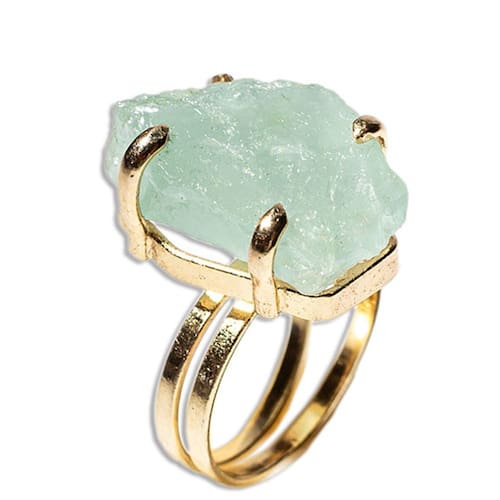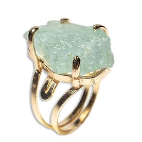 Descubra a elegância e a energia do Anel Águas Marinhas Bruto Ajustável! Com uma pedra natural com em média 25mm, este anel oferece beleza única e benefícios energéticos da Águas marinhas. Ajuste perfeito para qualquer dedo. Transforme seu visual e sinta a harmonia deste cristal poderoso. Adquira o seu agora!
