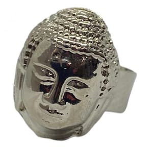 Anel Ajustável Indiano Ganesha Buda 2,8 cm Metal -Selecione Cor: Ródio Buda Rosto Anel Ajustável Indiano Ganesha Buda 2,8 cm em Metal