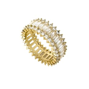 Anel Aliança Inteira Larga Navetes Cristais Banhado a Ouro