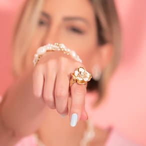 O Anel Armazem RR Bijoux flor com cristais dourado é um acessório moderno e despojado, que traz personalidade e atitude para o look. Perfeito para quem gosta de estar sempre bem arrumada e na moda