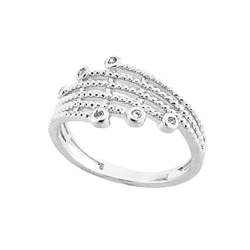 Anel Aros Pontilhados Com Zircônias Banhado a Prata