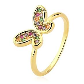 Anel 18 Borboleta Zircônias Coloridas Semijoia Lizzy Fatin
