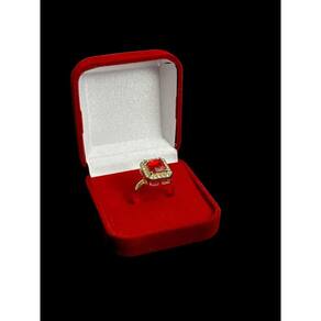 Anel Craveja Pedra Vermelha Ajustável - Banhado A Ouro 18K