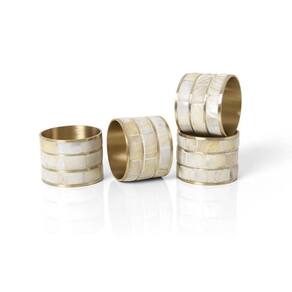 Anel De Guardanapo Copa E Cia 4 Peças Ayla Argola de Guardanapo Copa e Cia 4 Peças Complement Ayla - Características Gerais do Produto: - Composição: Alumínio Revestido de Madre Pérola - Detalhes: Kit Contém 04 peças.; Design Exclusivo Copa&Cia.; As cores podem sofrer pequenas alterações de cor, variando de monitor para monitor.; Os objetos que ambientam as fotos não acompanham o produto.; As fotos produzidas são apenas como sugestão de uso com as demais peças da coleção. - Cuidados: Armazenar em local seco e arejado.; Limpar o Produto Apenas com Pano Levemente Umedecido; Não molhar; Não utilizar solventes, abrasivos ou alvejantes. - Dimensões (cm): Diâmetro: 5,00 cm; Altura: 4 cm Acompanha o produto: - 4 Peças de Argolas de Guardanapo Garantia: - Sem Garantia