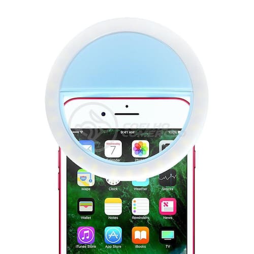 Anel De Led Luz Selfie Mini Ring Light Android e iOS - Azul Anel De Led Luz Para Selfie Clipe Mini Ring Light Flash Recarregável Celular Android e iOS